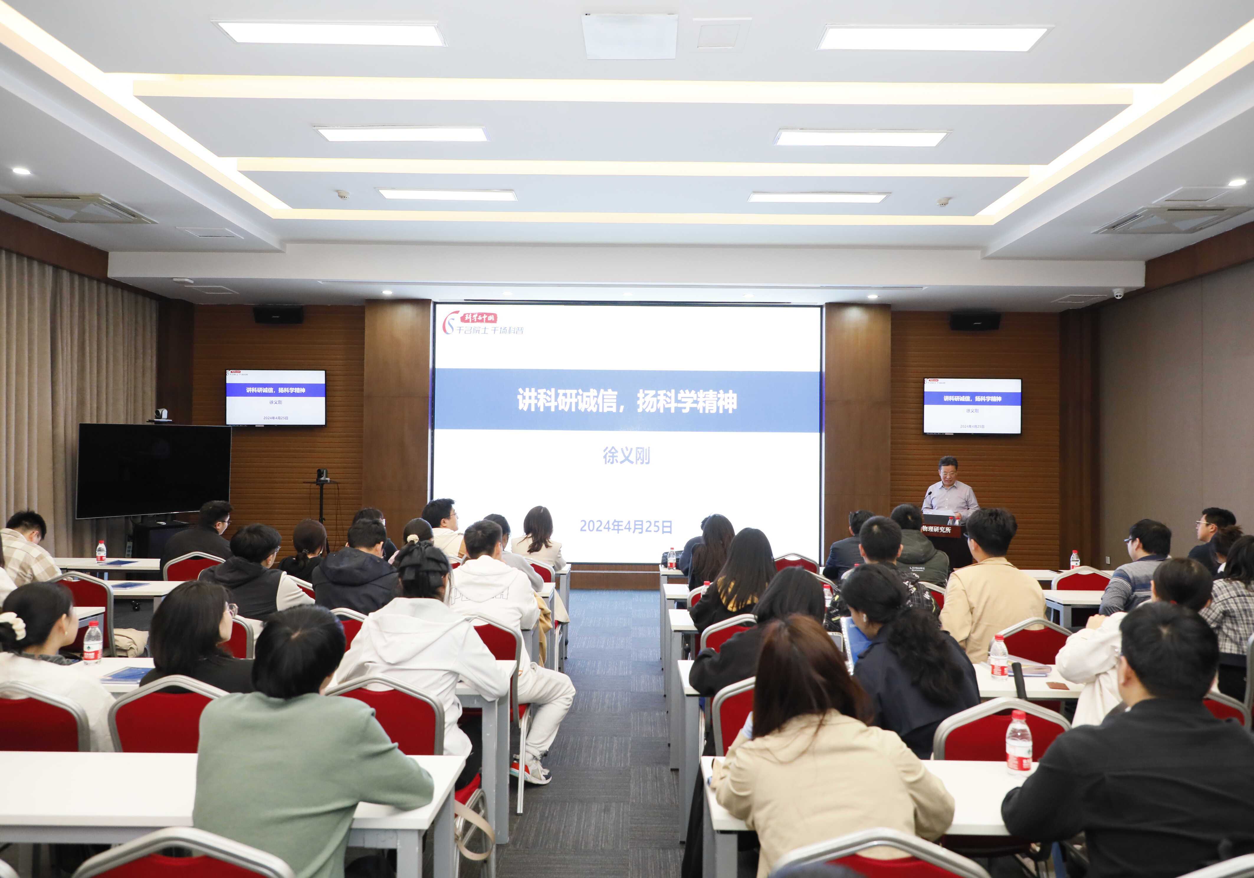 徐义刚的报告题目为《讲科研诚信 扬科学精神》,他通过各种案例阐述科研诚信和学风建设的重要性,分析科研诚信问题产生的缘由,探讨了科研诚信的灰色地带,认为要推进科研诚信治理体系建设,坚持对学术不端行为的零容忍,不断加强文化建设,提高个人素养,呼吁讲科研诚信从自我做起,要像珍惜生命一样珍惜学术声誉。报告案例丰富,问题分析透彻,深入浅出阐明科研诚信建设的重要意义,启发科技工作者充分认识到失信行为对个人、国家和社会造成的不可挽回的损失。现场参会人员积极互动,气氛热烈,围绕同行评议、人工智能伦理等热点问题进行提问,徐义刚逐一认真回答并与大家展开热烈讨论。