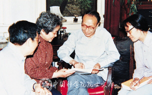 1994年邢其毅(右2)在北京大学化学系与教材编写组讨论《基础有机化学》修订书稿