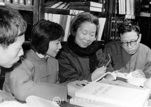 谢希德(右二)与复旦大学同事讨论问题