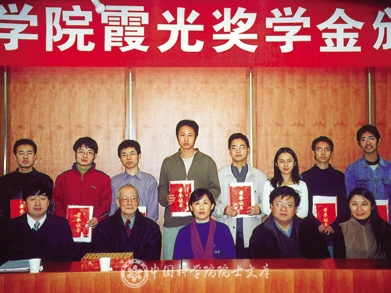 2005年11月,徐光宪(前排左2)与获“霞光”奖学金的学生合影